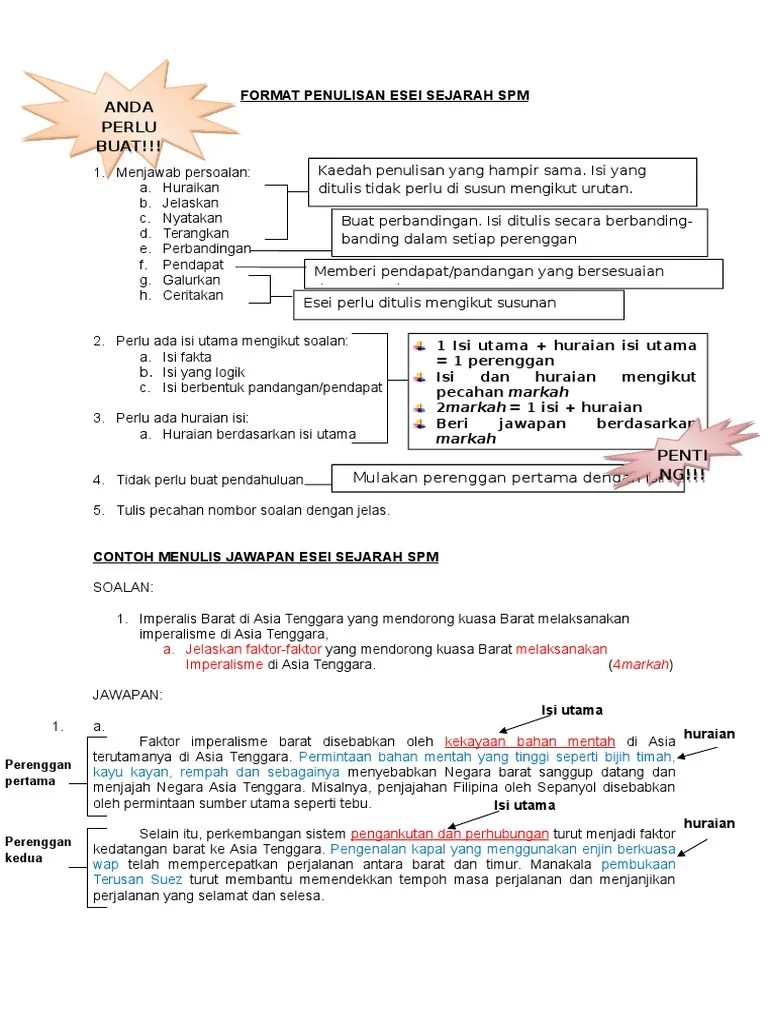 Format Esei Sejarah Tingkatan 2 : Top Pdf Contoh Penulisan Kerja Kursus Sejarah Stpm Penggal 2 Doc 123dok Com. Wong chee chong menerbitkan cara menulis esei sejarah dan. Sejarah spm (tingkatan 4 & 5) : Jawapan di beri berdasarkan markah yang telah di peruntukkan. Koleksi soalan, latihan, nota, modul sejarah.